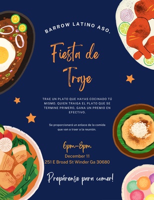 Join us for the December meeting of the Barrow Latino Association! This month's meeting will be a potluck where attendees are invited to bring a dish for everyone to sample. This dish can be one that represents you and your culture or simply one you love! A cash prize will be awarded to the most loved dish.